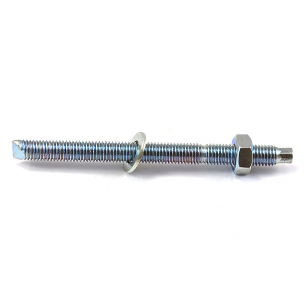 Расклинивающая вставка расположена в нижней части анкера. Деталь расширяется при смещении конуса, фиксируя изделие в посадочном отверстии.
